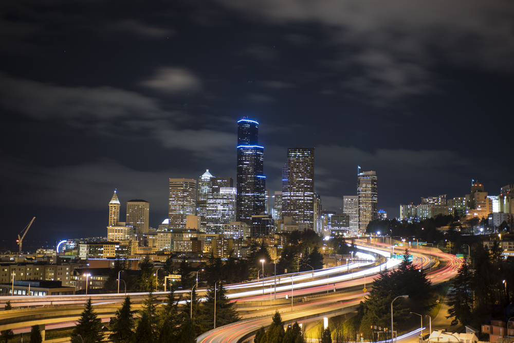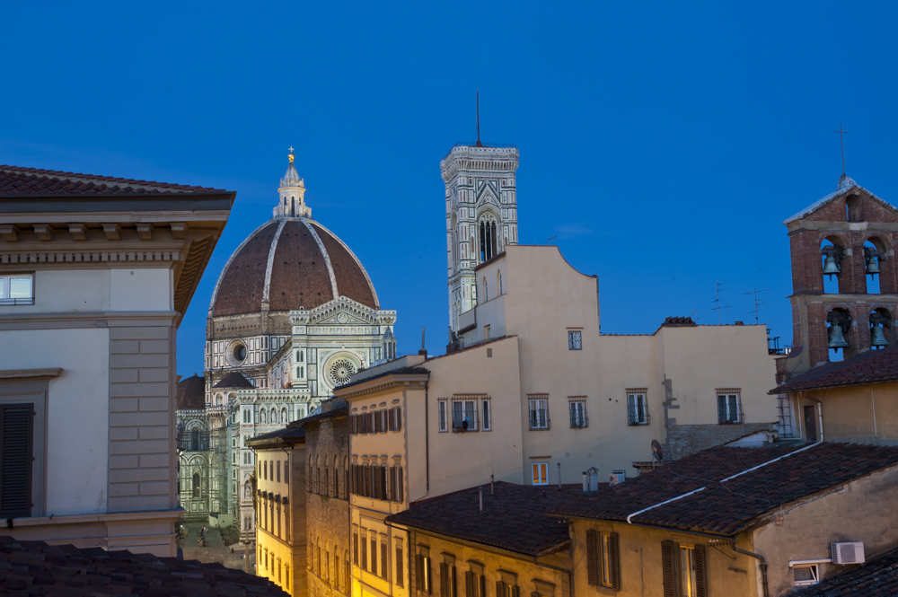 Duomo and Facade at night from surrounding rooftop, Florence, Italy
